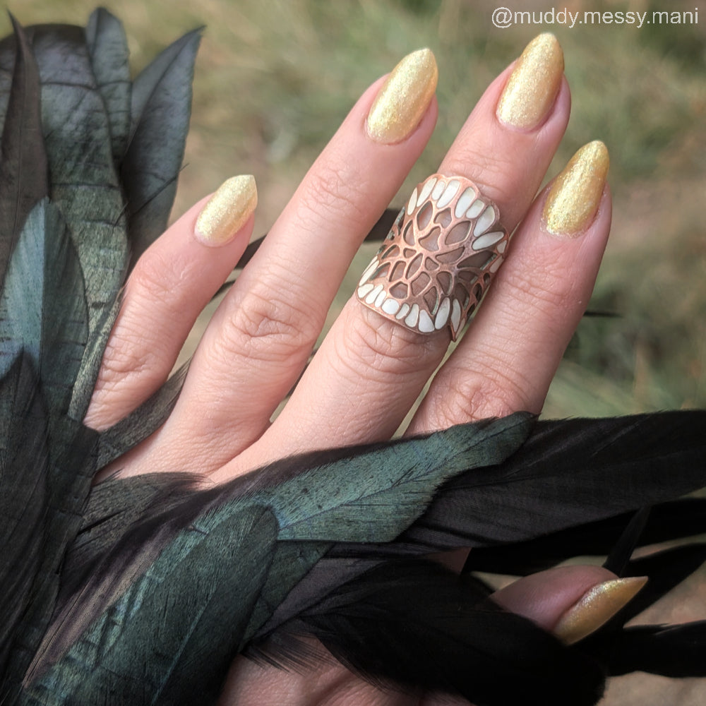 @polishorperish_ - RING FINGER: 3 coats over clear GelX extensions, no base, glossy top; ALL OTHERS: 3 coats, blurring base, glossy top