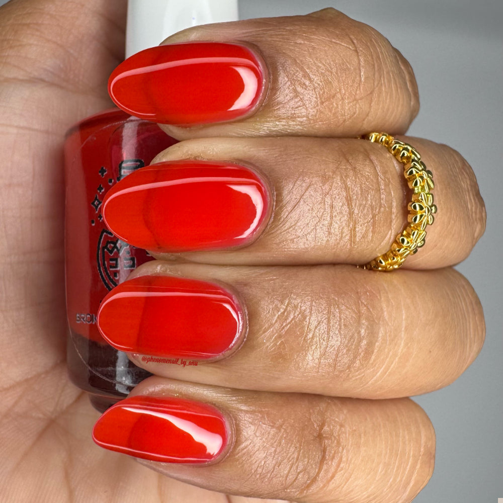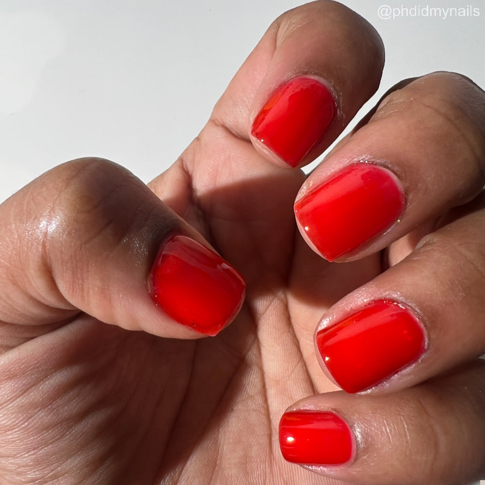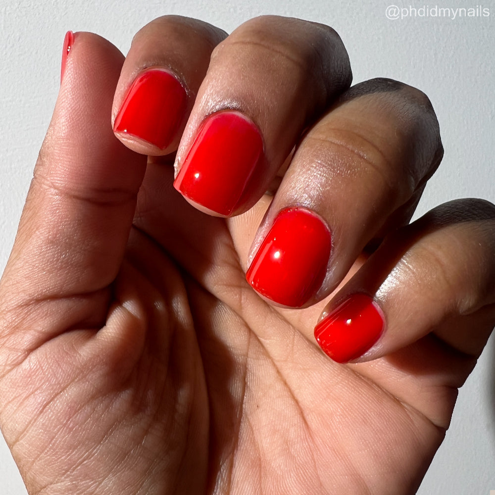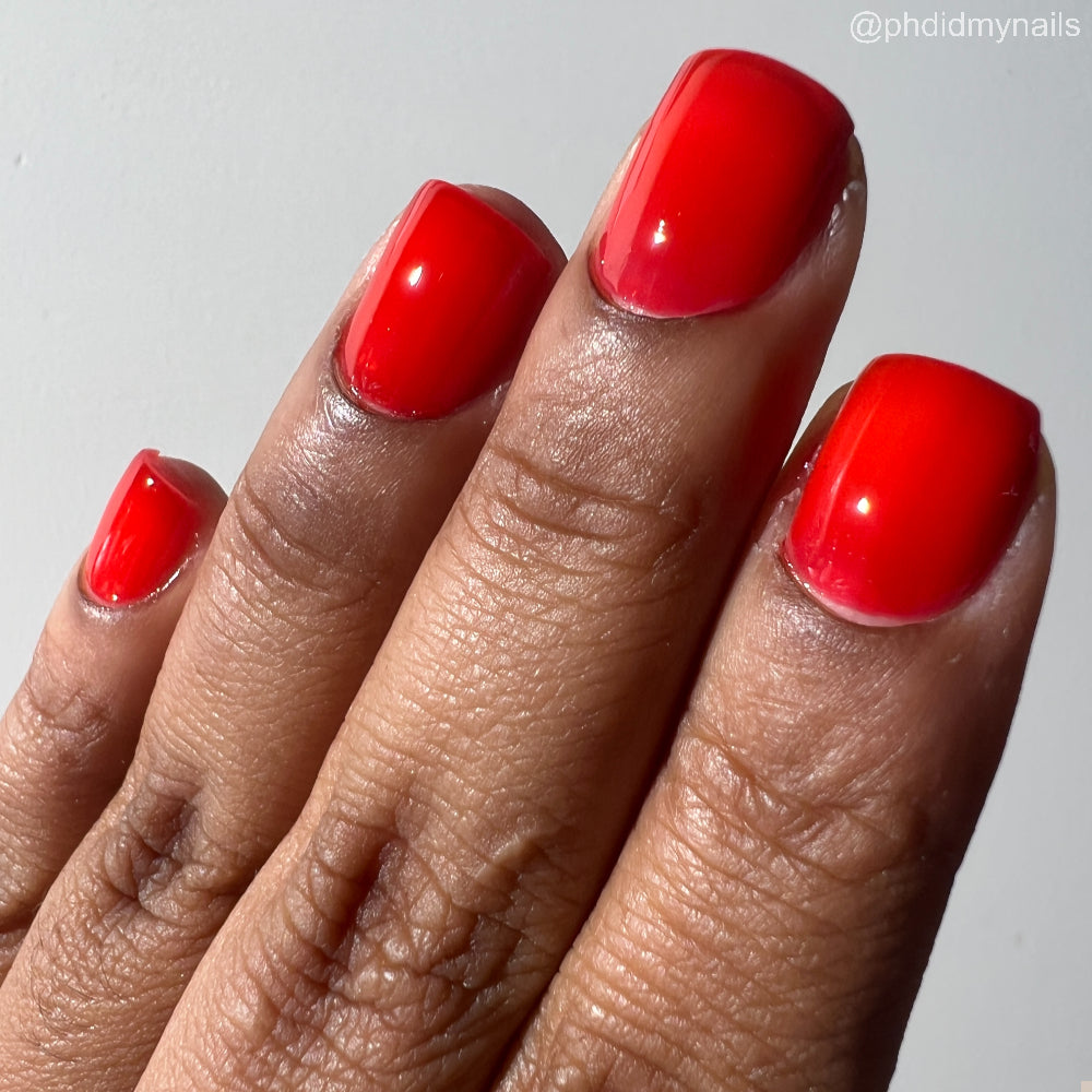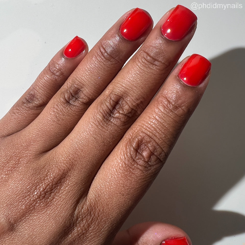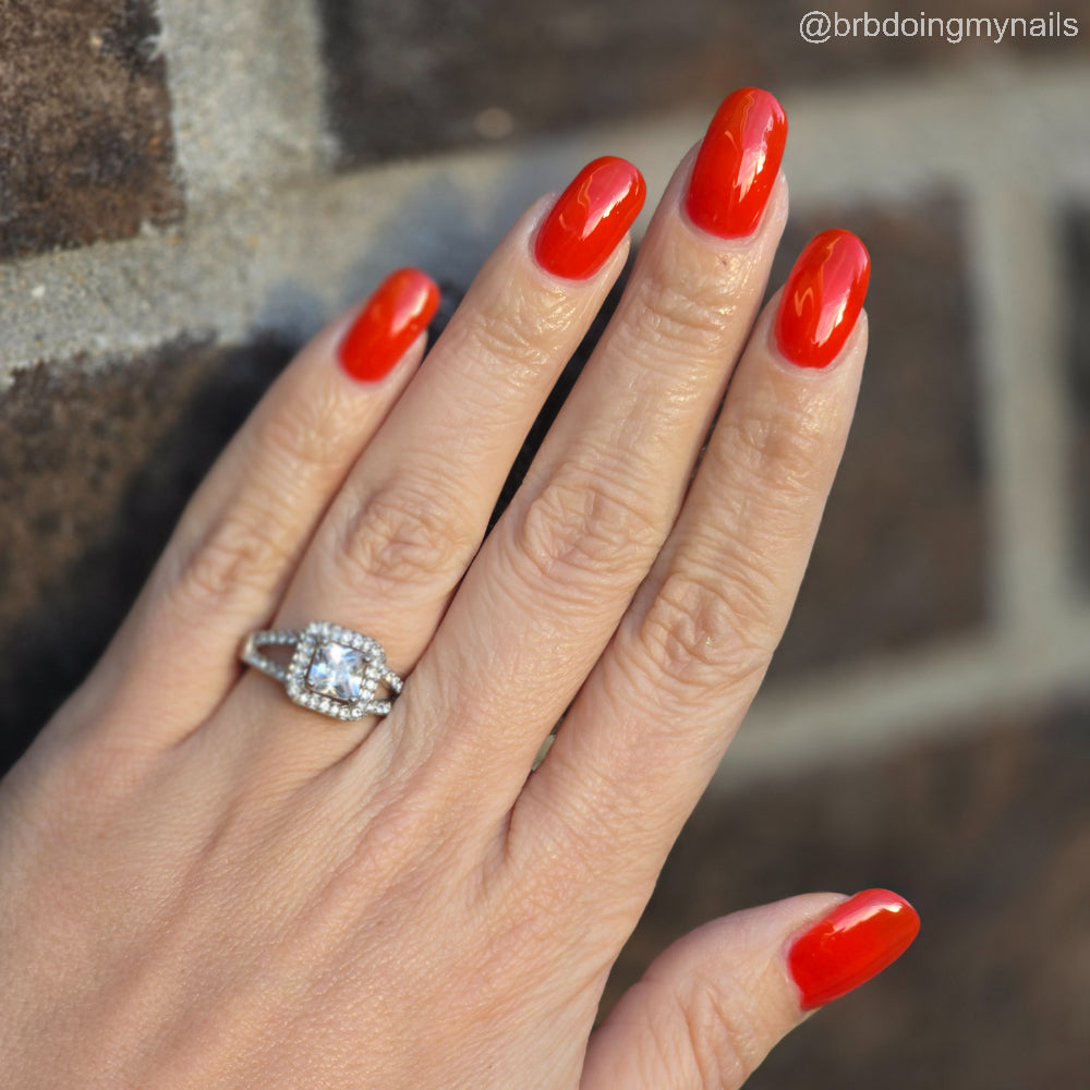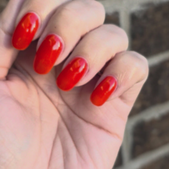 This polish is a vine ripened tomato red jelly, picked fresh from the garden.