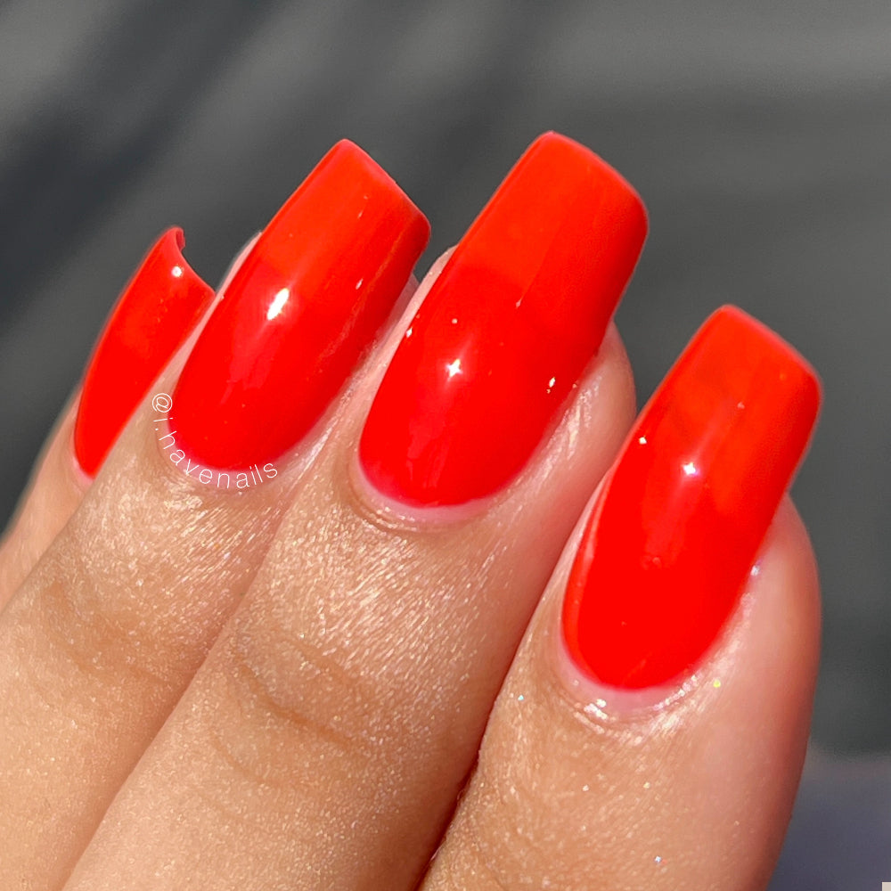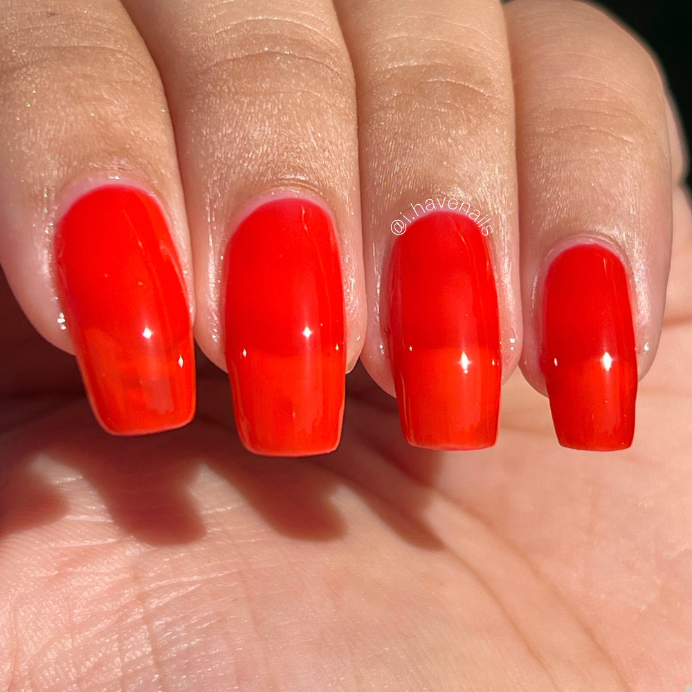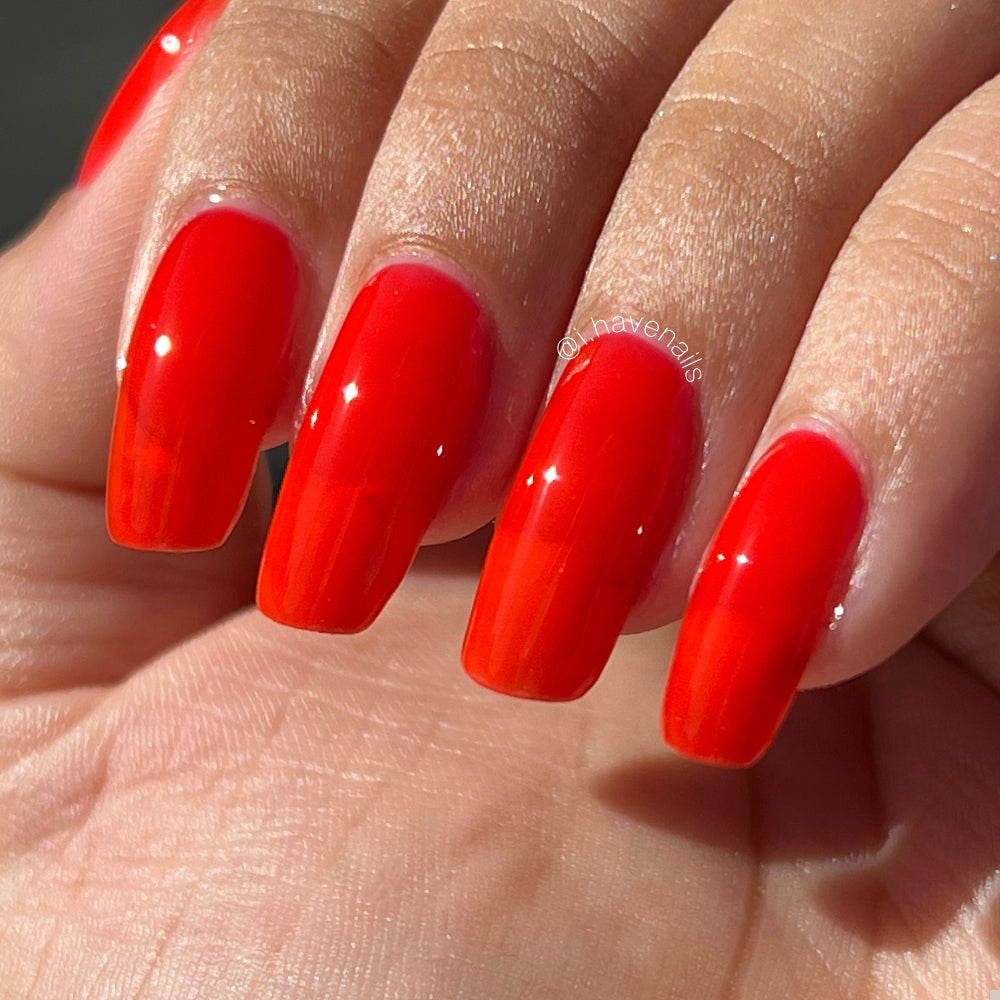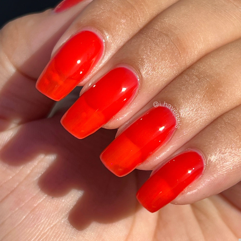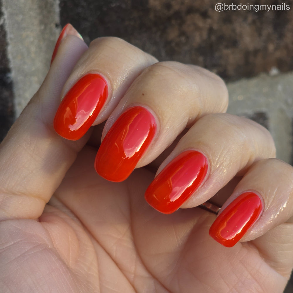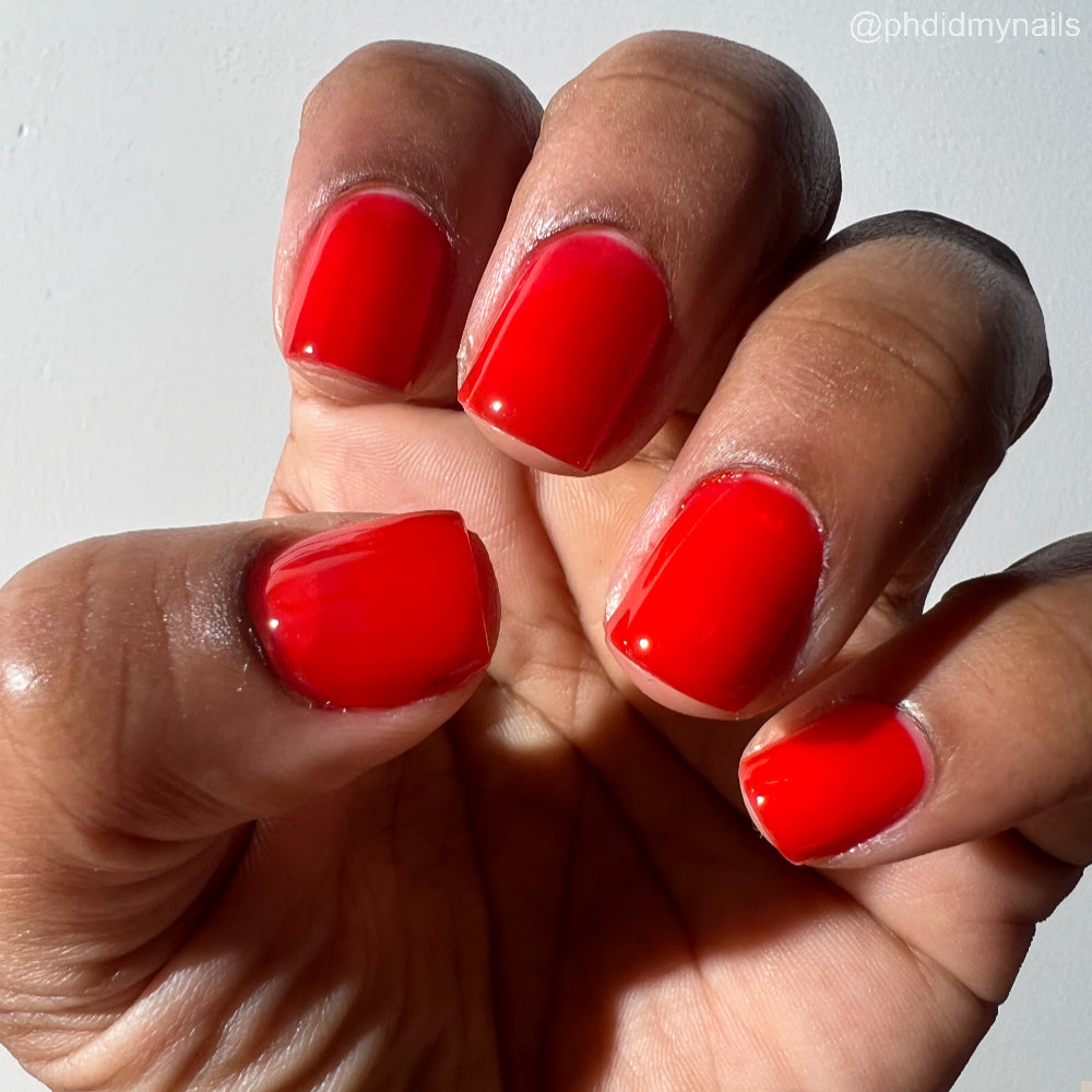 This polish is a vine ripened tomato red jelly, picked fresh from the garden.