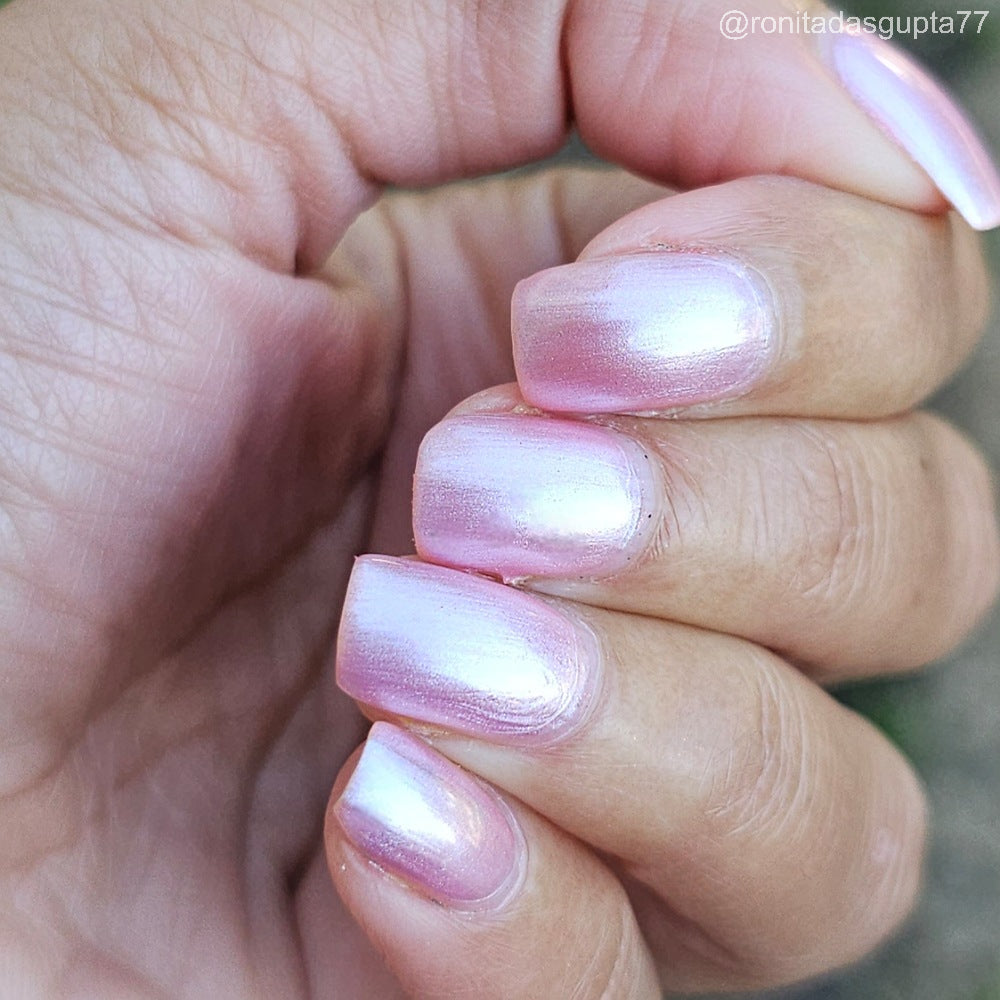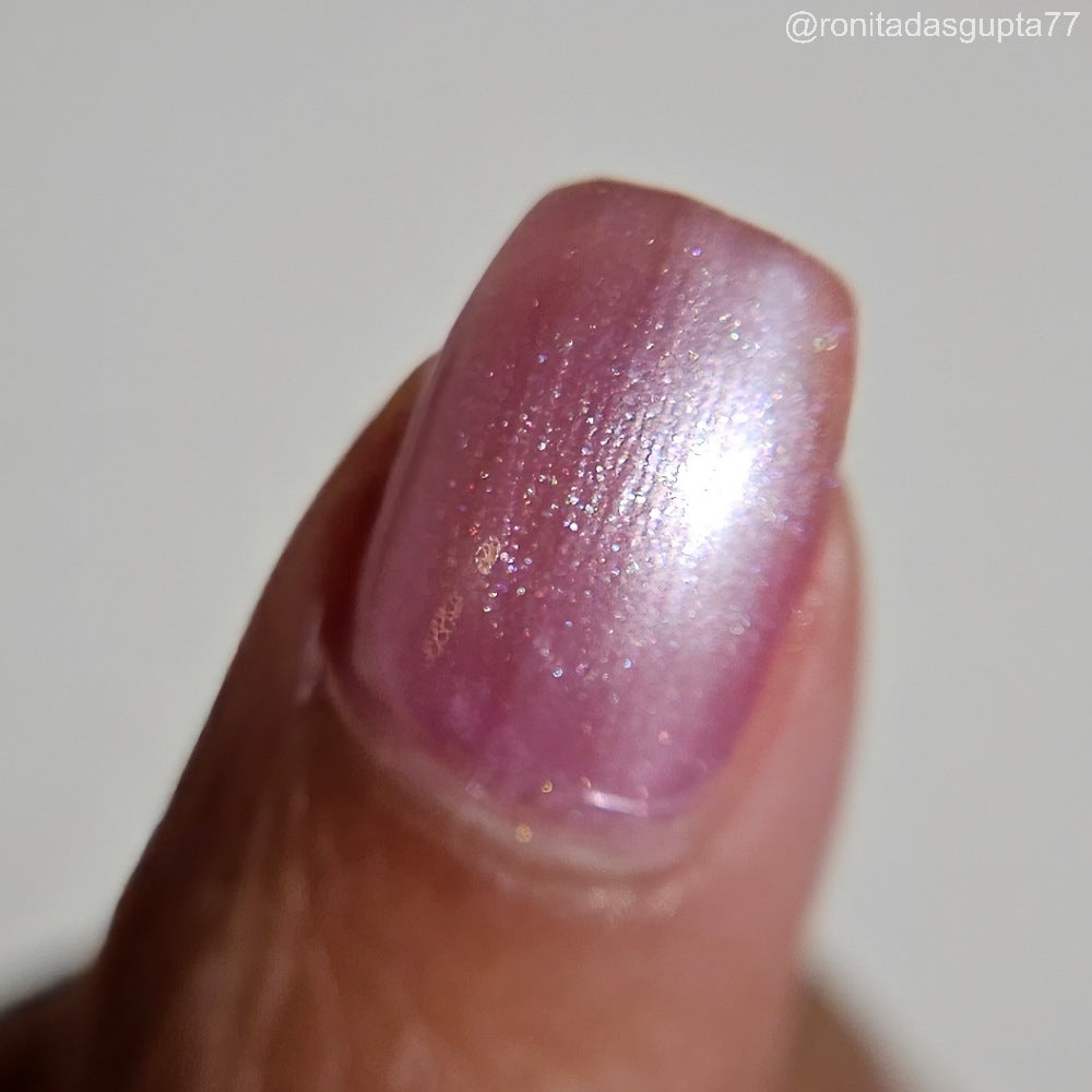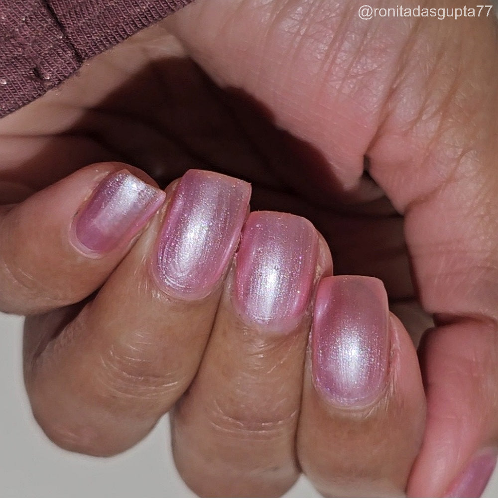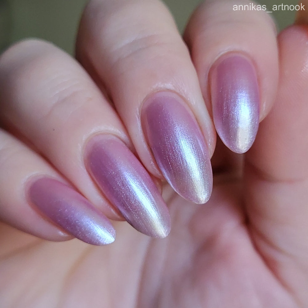 Light pink base with an almost metallic-looking white pearlescent shimmer.
