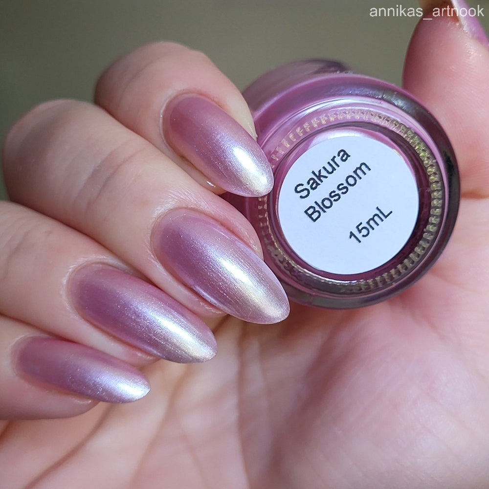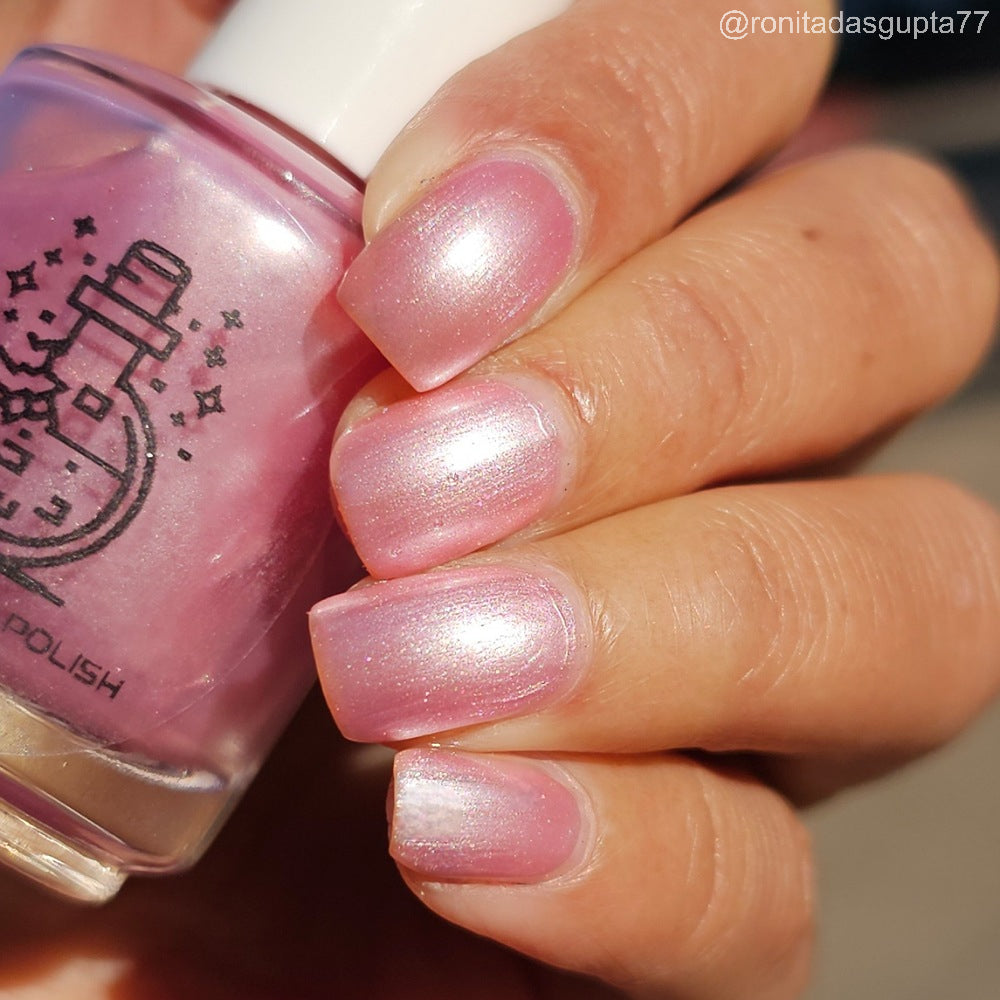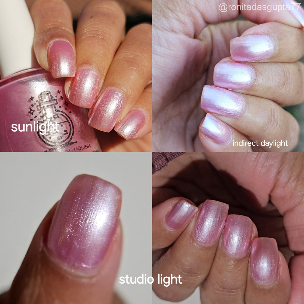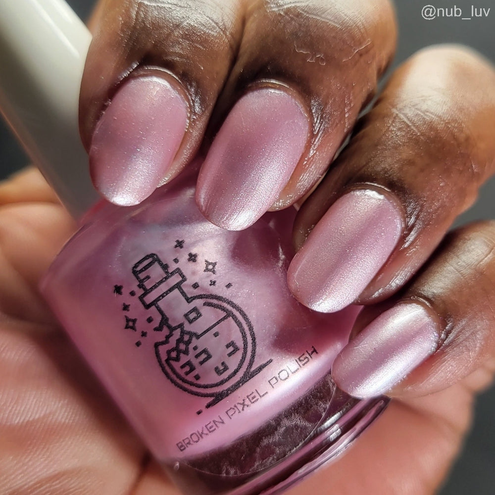 Light pink base with an almost metallic-looking white pearlescent shimmer.